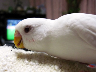 ち、近すぎですっ。くちばしが緑に染まってる気がしますっ。