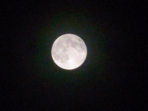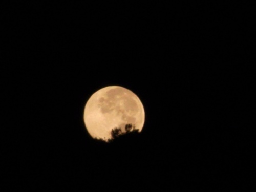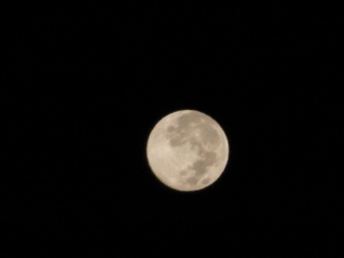 のぼるつき。雲がかかっていたのでぼんやり。 しずむつき。模様の位置が変わってます。 デジタルズームだったかを使わないとこのくらい。 設定をいじってこんな色に。山の向こうへ沈んでゆきました。