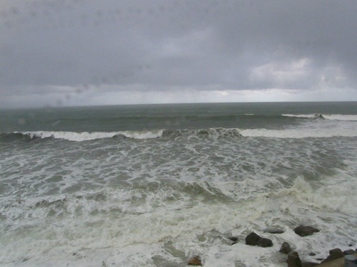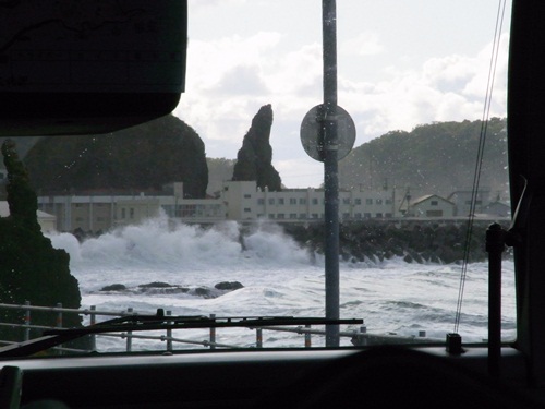 この季節にこれだけ海が荒れるのは珍しいそうで。