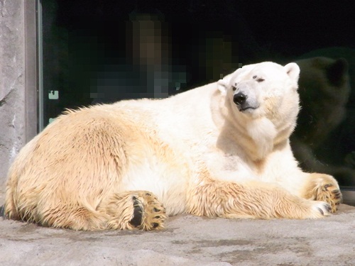 (背後にわりとはっきりと、あっち側からシロクマさん見てる方が写っていたのでモザイクってみました)
